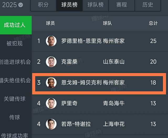 第三个,恩戈姆的合乎速率确凿很快,他现在完全是扛着梅州客家在走。他在中超前5轮孝顺2球1助攻,1东谈主独造3球,赶快融入球队,不仅拿到官方MVP,况兼在中超尝试过东谈主、告捷过东谈主和大地争抢这3个数据上,刻下齐是排行前3位,性价比确凿止境高。